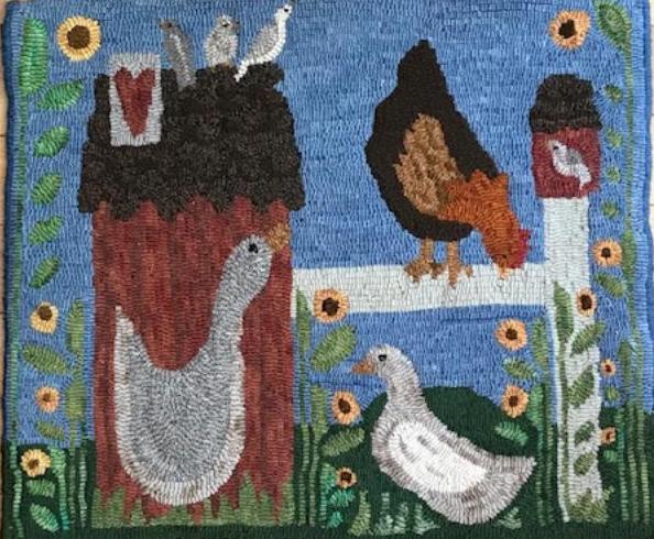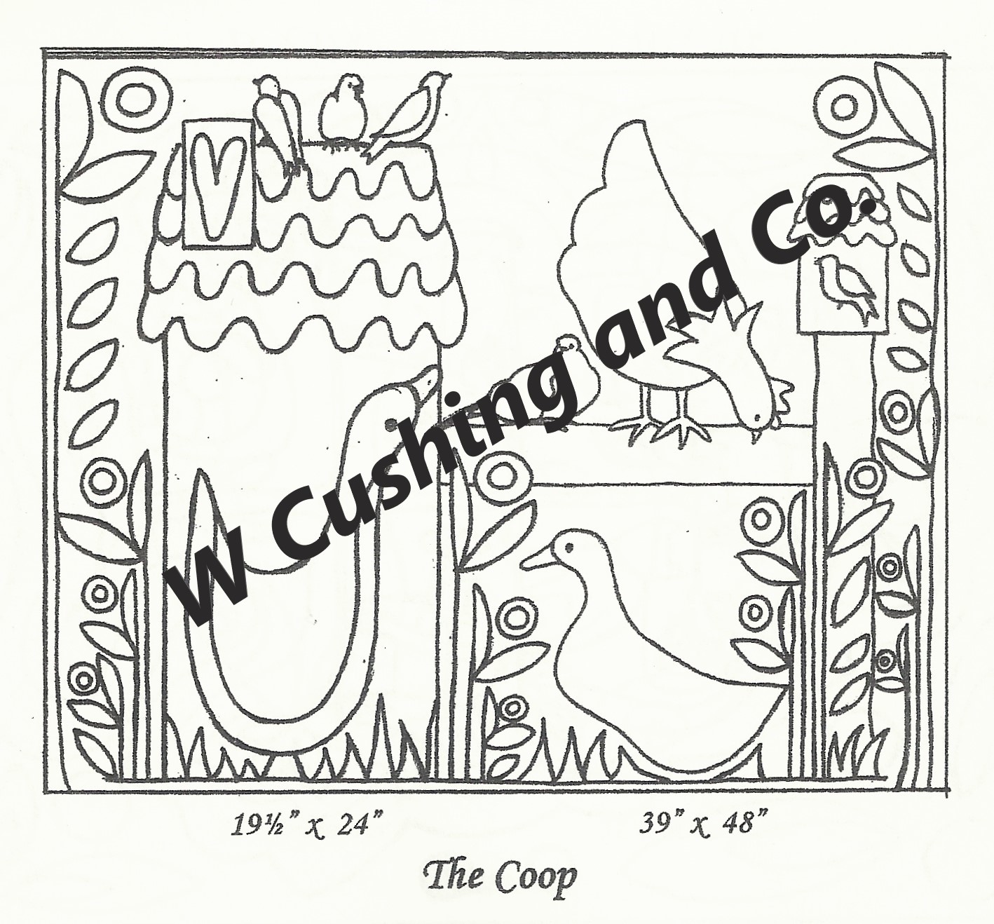 The Coop Large, pattern by Primitive Grace, 39″ x 48″. This pattern is available in another size–see separate listing. A good way to incorporate all your favorite colors. Fun to use velvet, metallics, burly spun yarns and your stash! Suggested wools are Hummingbird, Jacob’s Red and Brown, Ye Old Parchment, Green Oh Green, Imari Gold and more from our dyed wools! Mix Textured wool with Dyed wool for a complete look. Please click the link to view all our in-stock textures. https://dev.wcushing.com/product-category/textured-wool/