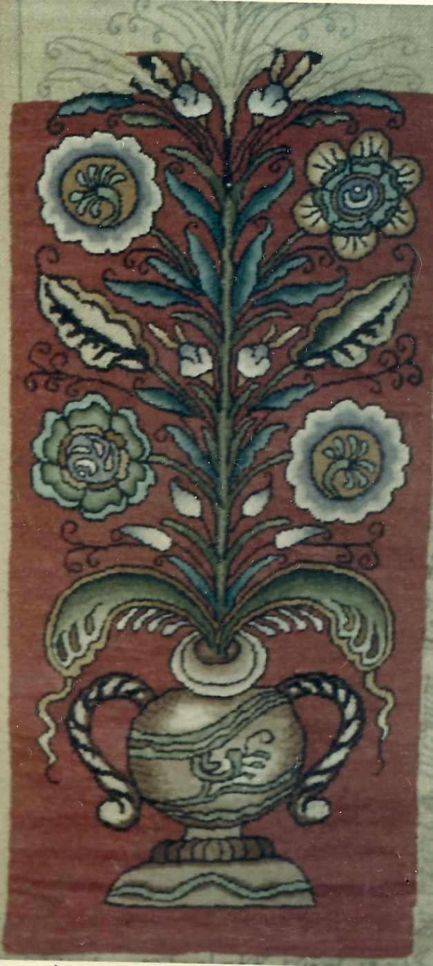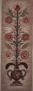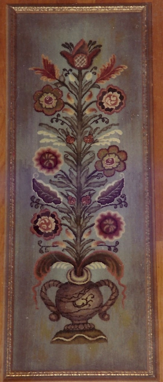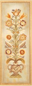 Tinnelokk Bellpull P106 by Pearl McGown 12″ x 39″ is this beautiful floral pattern. A lovely bell pull. Fun to use velvet, metallics, burly spun yarns and your stash! Our dyed wools will compliment and help you achieve light to dark look for your flowers. Bold Zinnia, Sapphire, Emerald, Yellow Topaz, Deep Purple, to name a few. Mix Textured wool with Dyed wool for a complete look.