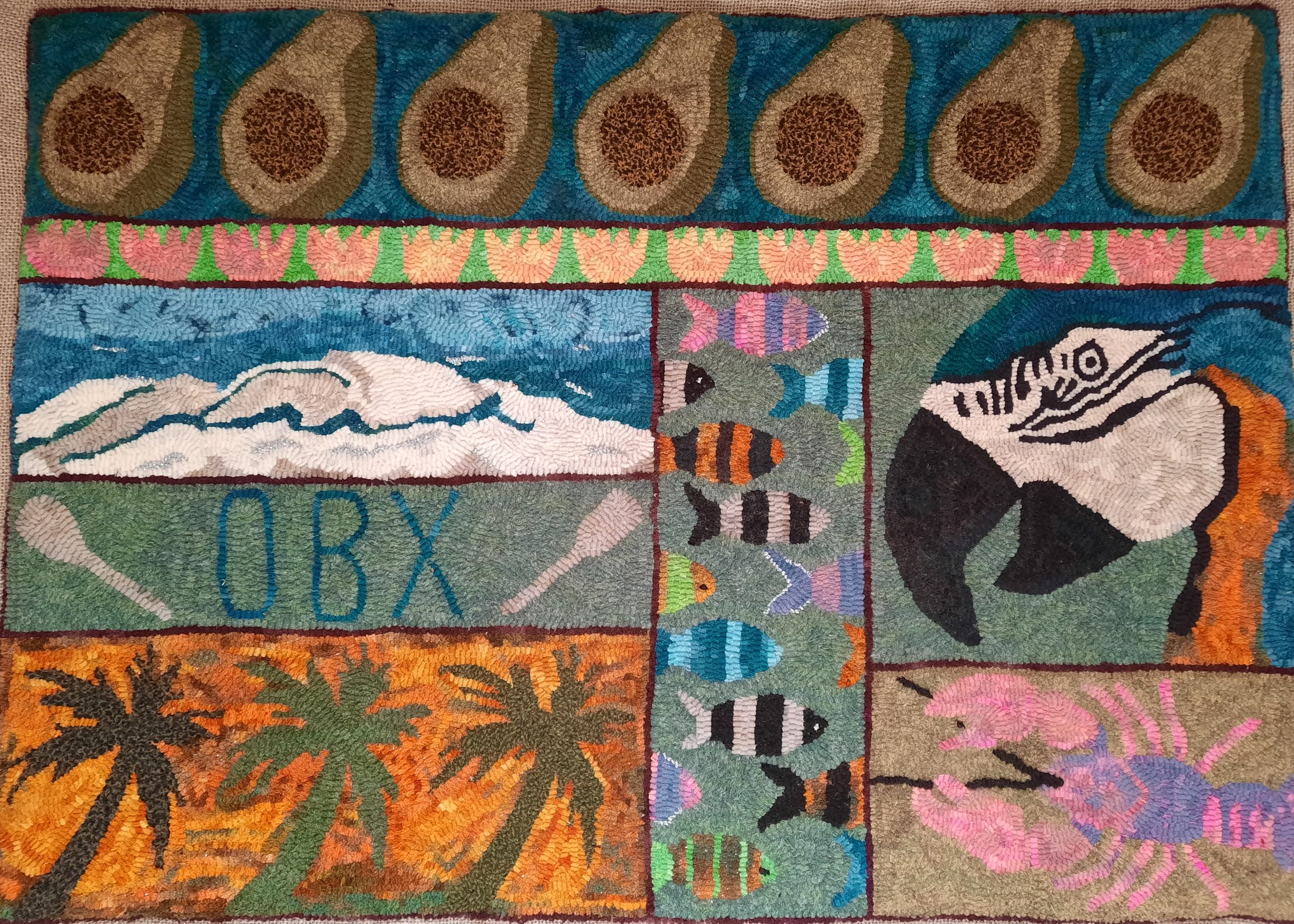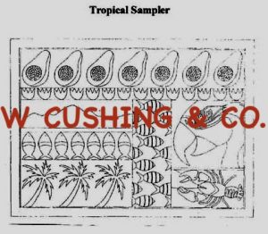 W. Cushing is proud to have Nola Hooks and Cactus Needle patterns!   Tropical Sampler, Pattern by Cactus Needle, 26″ X 34”.   A great stash reducer!!  *Embellishments are fun to add, such as Arctic Rays or Burly Spun Yarn for a 3D effect.  Try our dip spots hand dyed wool for shading effects.  We have a large variety of hand dyed wools for your rug such as Verdigris, Yellow Topaz, Jacob’s Teal Green, Tropical and more!  Mix Textured wool with Dyed wool for a complete look.  Please click the link to view all our in-stock textures.  https://dev.wcushing.com/product-category/textured-wool/