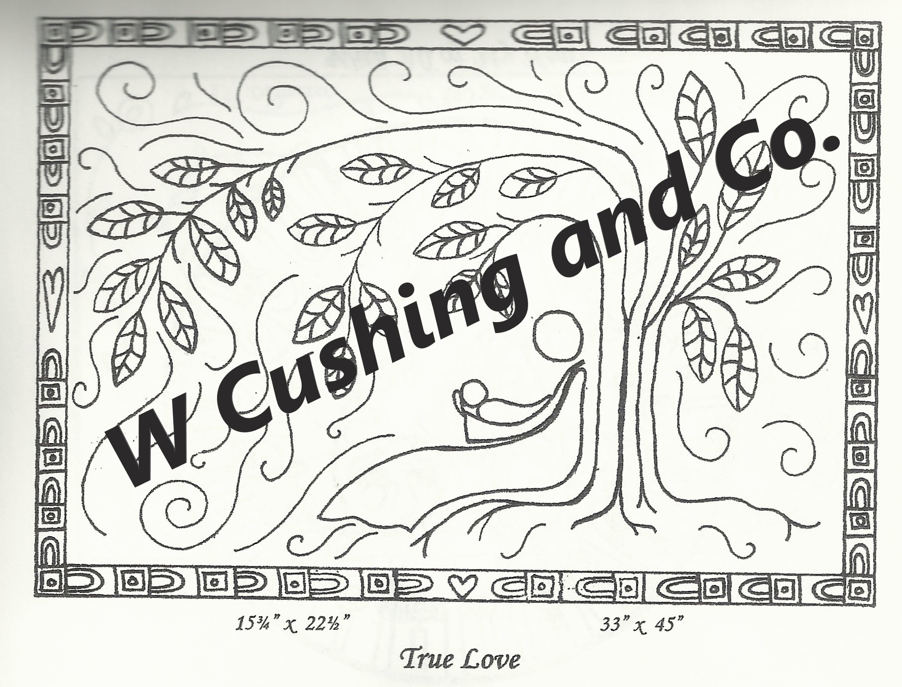 True Love Large, pattern by Primitive Grace, 33″ x 45″ This pattern is available in another size–see separate listing. Lovely pattern for a new parent or grandparent! A good way to incorporate all your favorite colors. Fun to use velvet, metallics, burly spun yarns and your stash! Suggested wools are Jacob’s Gold and Brown, Raspberry Burst, Green Oh Green, Imari Jade, and more from our dyed wools! Mix Textured wool with Dyed wool for a complete look. Please click the link to view all our in-stock textures. https://dev.wcushing.com/product-category/textured-wool/