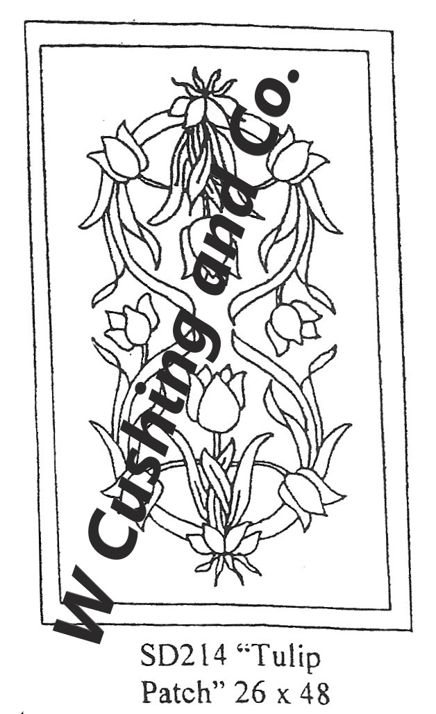 Tulip Patch by Salma Dhanji approx. 26 x 48 SD214. A nice floral to incorporate all your favorite colors! Fun to use velvet, metallics, burly spun yarns and your stash! Suggested dyed wools to use are Glistening Mts Majesty, Caribbean, Green Oh Green, Mother of Pearl, Mums the Word, Spearmint and more! Mix Textured wool with Dyed wool for a complete look. Please click the link to view all our in-stock textures. https://dev.wcushing.com/product-category/textured-wool/