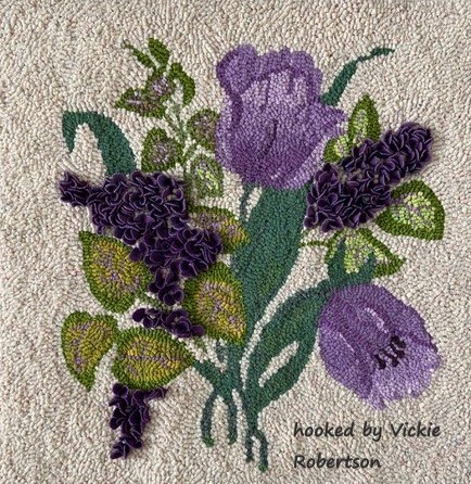 The first picture was hooked by Serena Wakelin-Starr.   Other examples hooked by Pam Landry, Vickie Robertson, Patti Burr and Lisanne Miller.