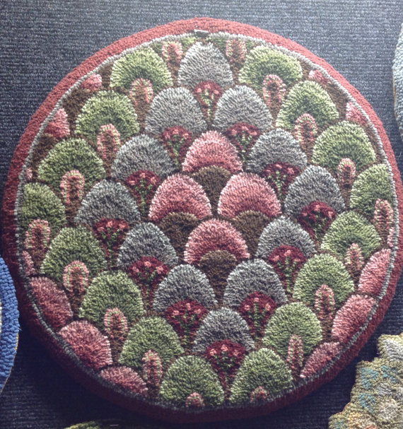 Vermont Shell 15″ round, a classic pattern, wonderful chair seat pattern for your leftovers. . . for any decor! *Embellishments such as Velvets, Arctic Rays, Fur, Roving, Burly Spun or Metallic Yarn for a 3D effect to add to your pattern! Perfect way to be creative! Try our dip spots hand dyed wool for shading effects. We have a large variety of hand dyed wools for your rug such as our Imari Series and our Jacob’s line. Mix Textured wool with Dyed wool for a complete look. Please click the link to view all our in-stock textures. https://dev.wcushing.com/product-category/textured-wool/