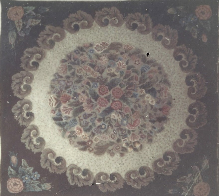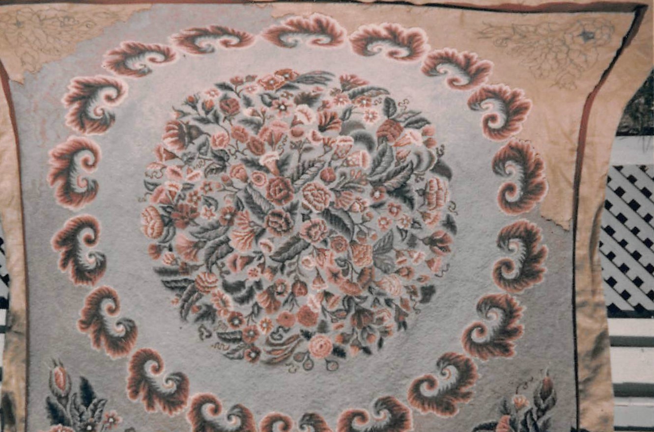 This wonderful rug is Victorian Square by Pearl McGown OSV 339 84″ x 84″. It is a beautiful floral that embellishments are fun to add, such as Arctic Rays or Metallic Yarn for a 3D effect. Try our dip spots hand dyed wool for shading effects. We have a large variety of hand dyed wools for your rug such as Better Than Roses, Jacob’s Peach, Zinnia Garden and more!