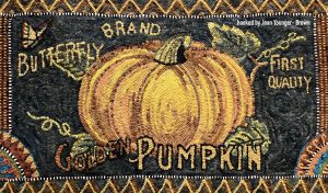 Vintage Golden Pumpkin Label Pattern, 21 x 36, Vintage Postcard Pattern From Joan Moshimer’s Studio