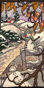Welcome All Ye Snow Lovers Storybook Cottage Series based on the artwork of Alida Akers, 24 x 44 for larger cuts.  Embellishments are fun to add, such as Arctic Rays, Fur or Metallic Yarn for a 3D effect to add to your snowman!