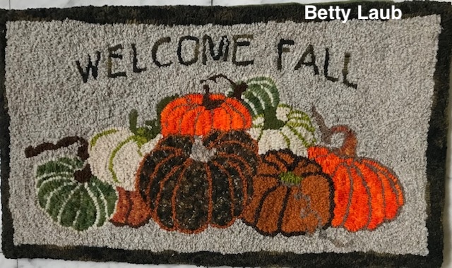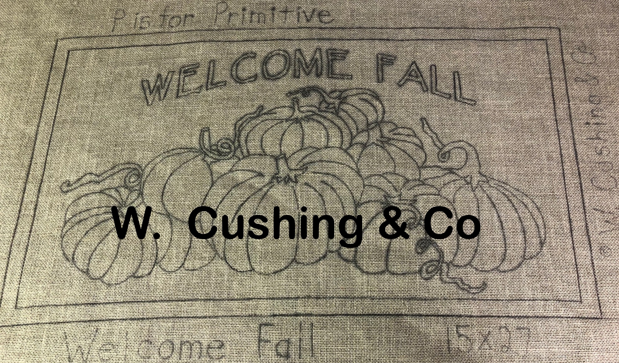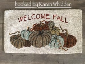 Welcome Fall, 15 x 27. Perfect size for your table, a trunk or to hang on the wall! Very versatile and a great fall rug! Embellishments are fun to add, such as Arctic Rays or Metallic Yarn for a 3D effect.