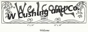 Welcome Large, pattern by Primitive Grace, 12″ x 48″.  This pattern is great to help reduce your stash. Embellishments are fun to add, such as Arctic Rays or Metallic Yarn for a 3D effect.  Try our dip spots hand dyed wool for shading effects.  We have a large variety of hand dyed wools for your rug such as Best of Blue, Gull, Bowl of Cranberries and more!  Mix Textured wool with Dyed wool for a complete look.  Please click the link to view all our in-stock textures.  https://dev.wcushing.com/product-category/textured-wool/