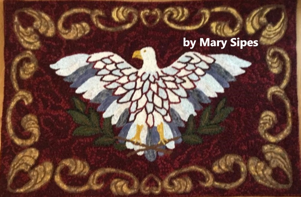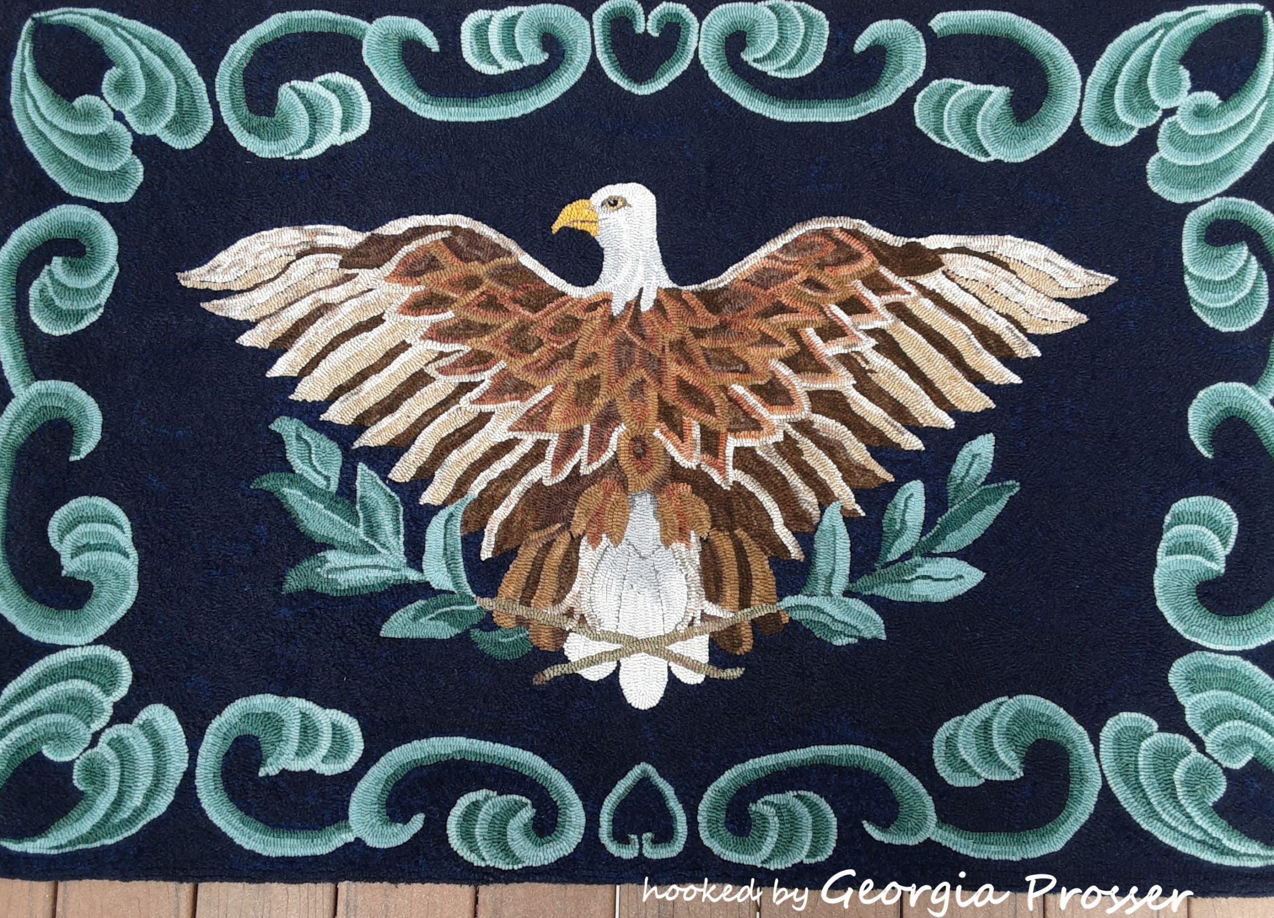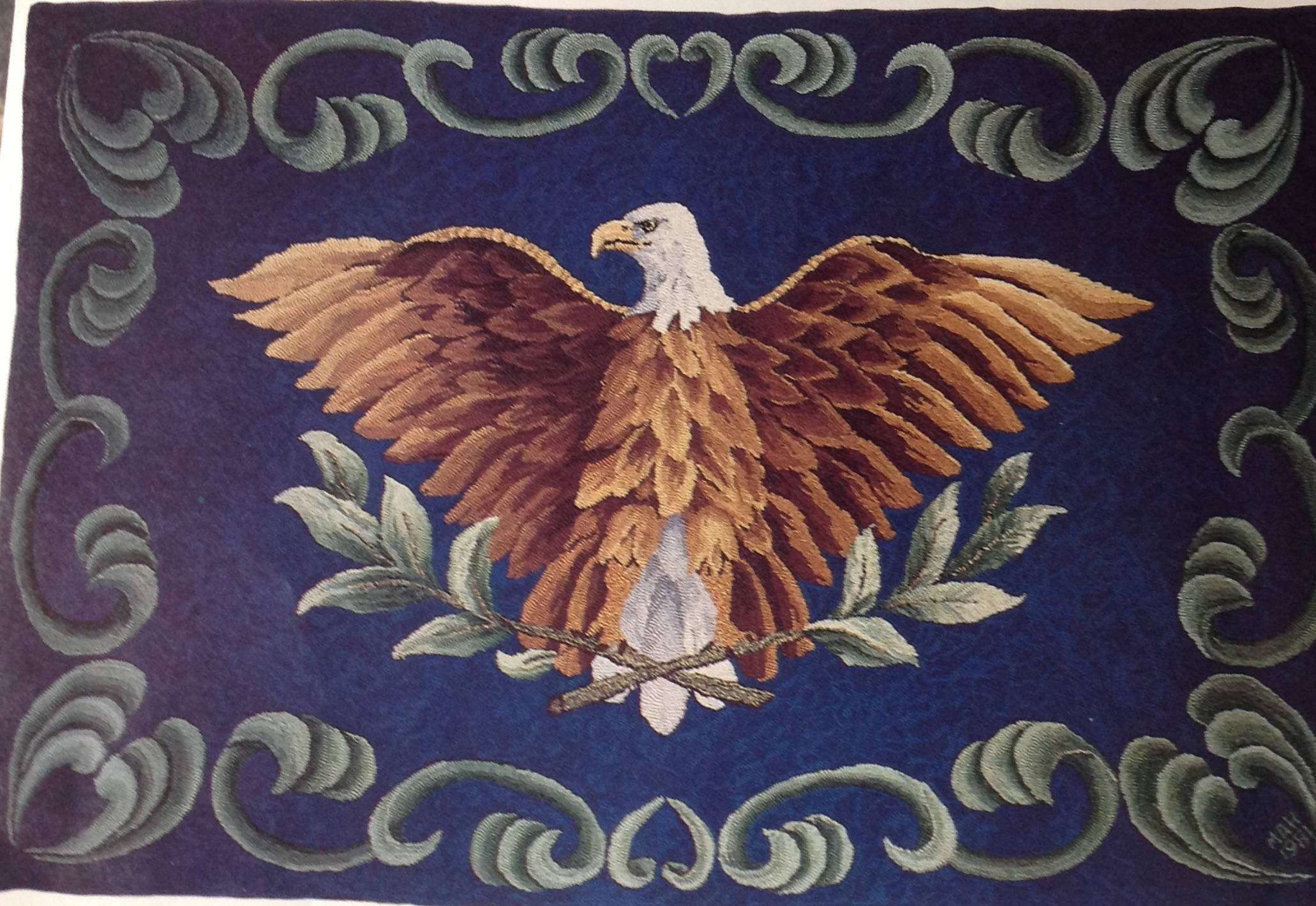 Wendell Eagle Great Rug Hooking Pattern, originally a Ruth Hall Pattern. Part of The Treasury of Hooked Rugs, featured in News and Views! 38″ x 57″ Embellishments are fun to add, such as Arctic Rays or Metallic Yarn for a 3D effect.
