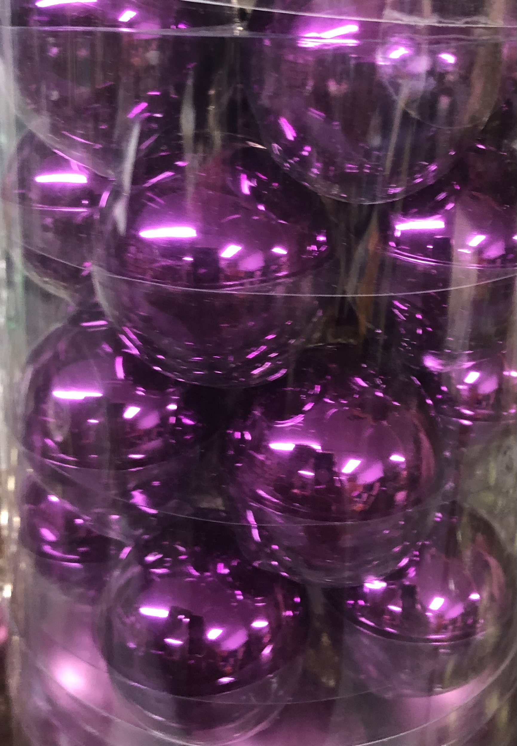 These are glass. They are all Whitehurst ornaments. There are 20 per container.