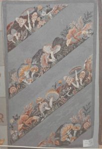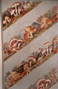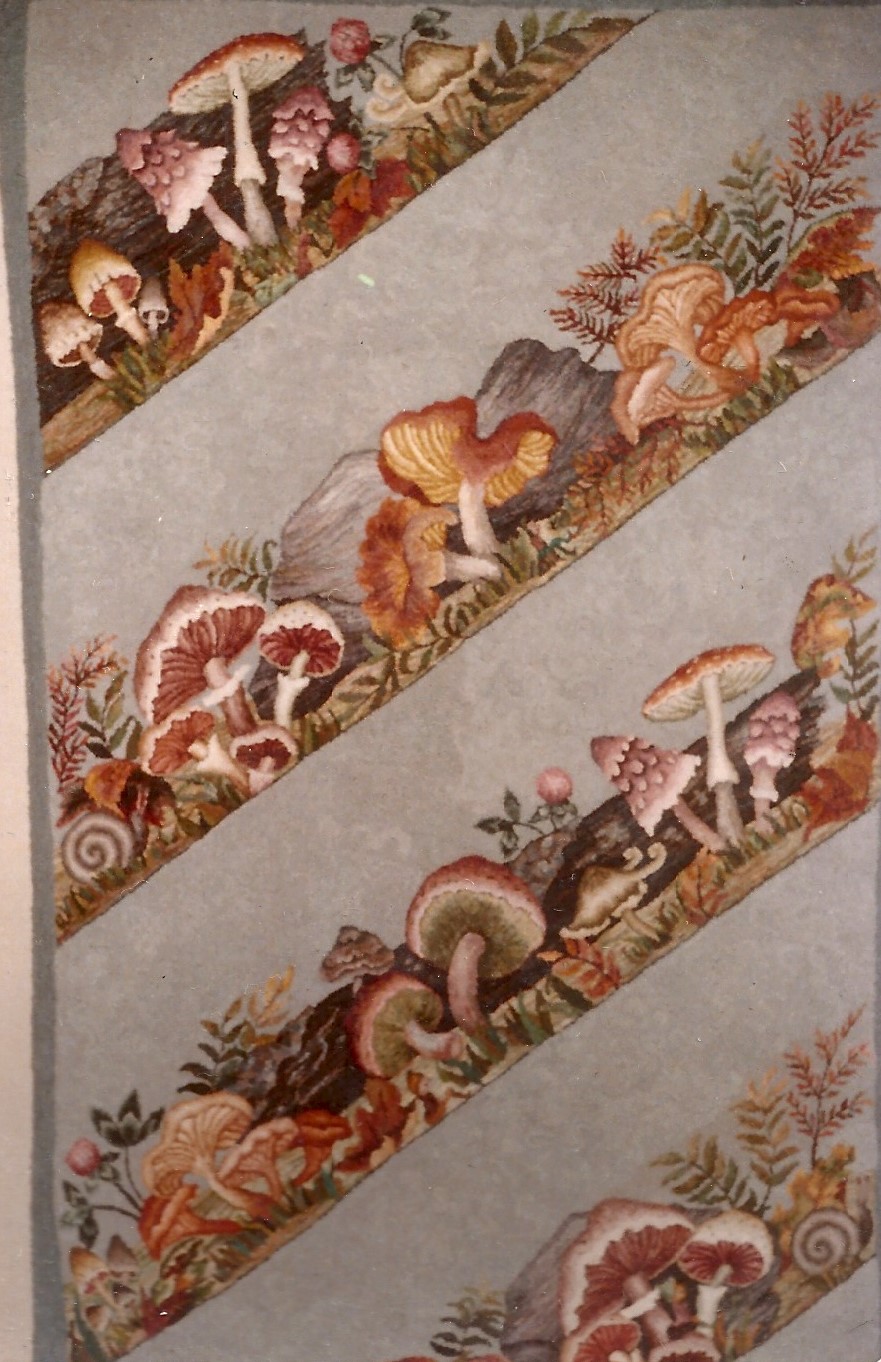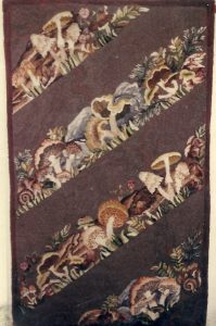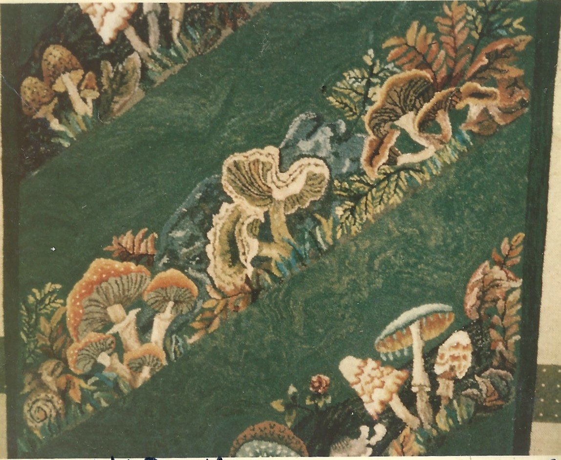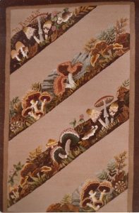 This beautiful rug is Wild Beauties by Pearl McGown OSV 749 36″ x 60″ .  We have textured and dyed wool for your mushrooms.  Fun to use velvet, metallics, burly spun yarns, furs and your stash!  A great way to be colorful and bold.  From our dyed wool collection, try Glacier, Imari Rose-Taupe, Imari Gold and Jade!  Mix Textured wool with Dyed wool for a complete look.  Please click the link to view all our in-stock textures.  https://dev.wcushing.com/product-category/textured-wool/