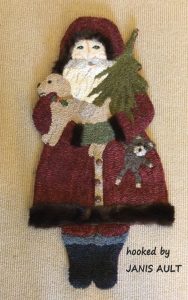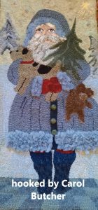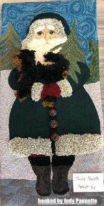 Hooked by Lisanne Miller. Another by Janis Ault, who made hers a shutter sitter. Others by Carol Butcher, Jennie Adcock and Judy Paquette.  Beautifully displayed anyway you choose to hook it!